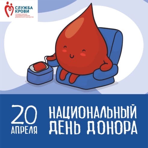|  | Национальный день донора отмечается 20 апреля 20 апреля в России отмечается важный социальный праздник – Национальный день донора. Он был учреждён в 2007 году на "круглом столе" по проблемам донорства и службы крови, прошедшем в Государственной Думе РФ.Праздник этот посвящён в первую очередь самим донорам: людям, ...